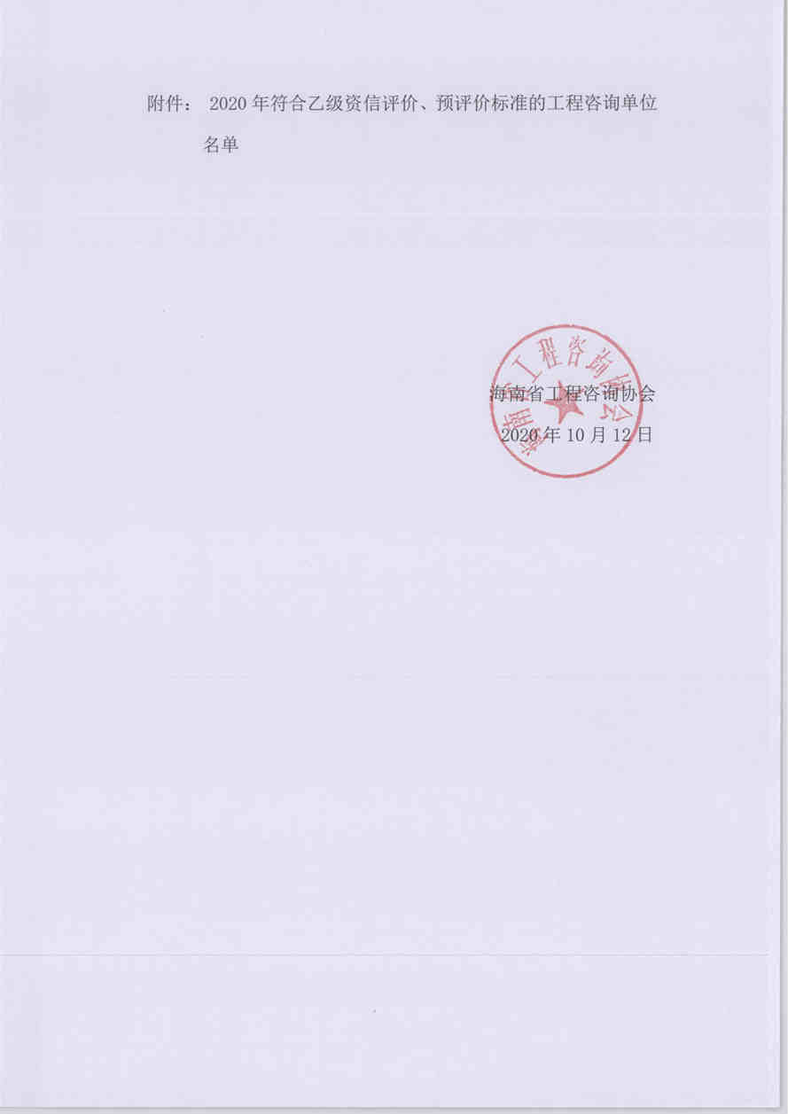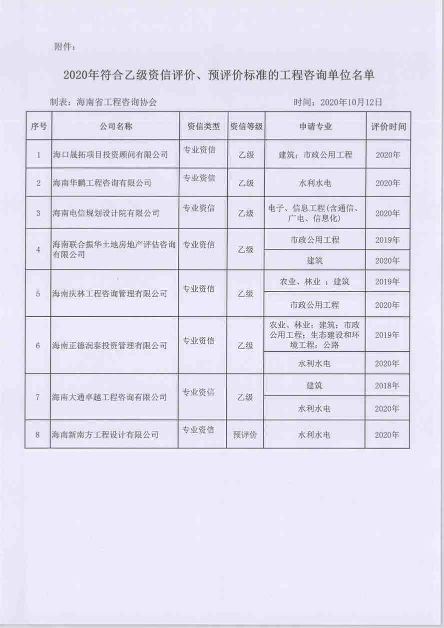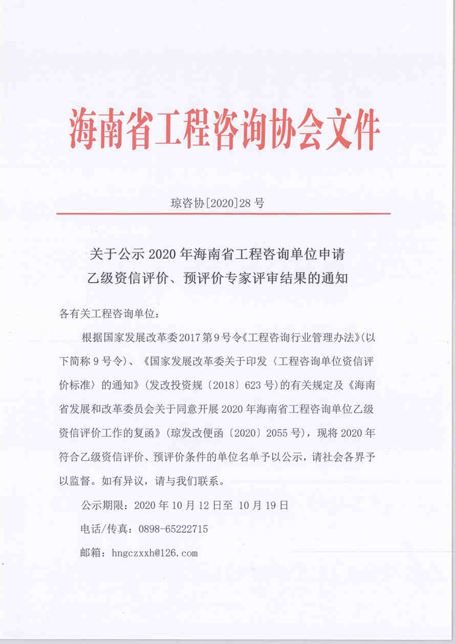 关于公示2020年海南省工程咨询单位申请乙级资信评价、预评价专家评审结果的通知 您所在位置:网站首页 > 详细信息