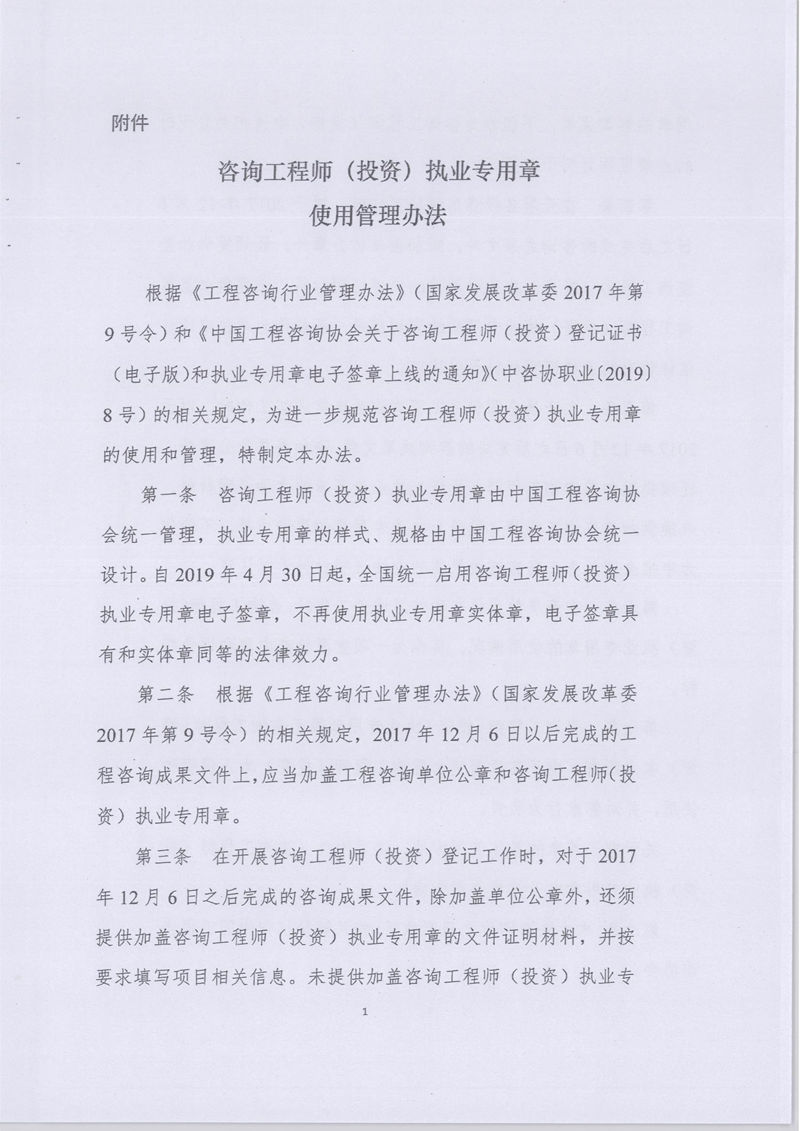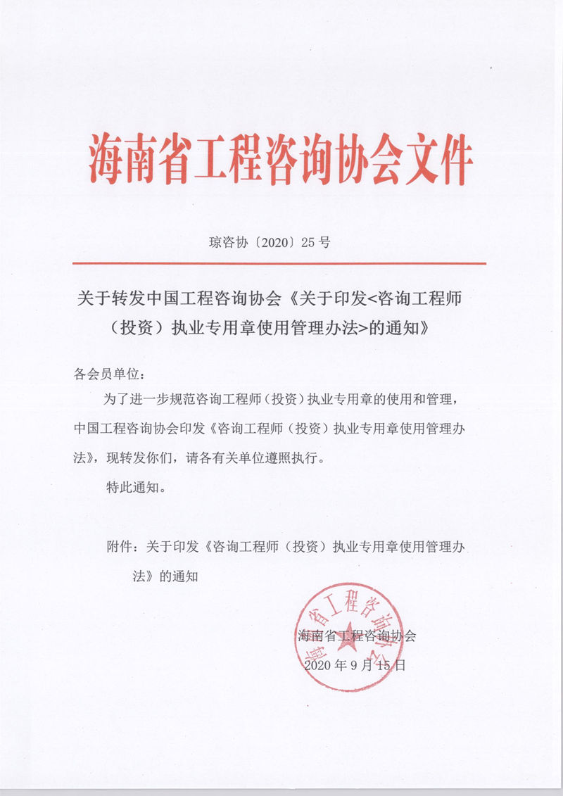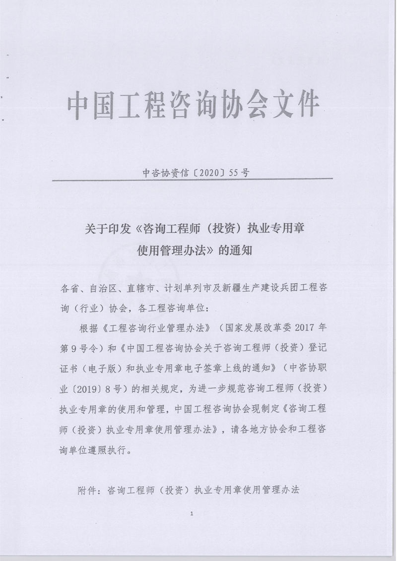 关于转发中国工程咨询协会《关于印发<咨询工程师(投资)执业专用章使用管理办法>的通知》 您所在位置:网站首页 > 详细信息