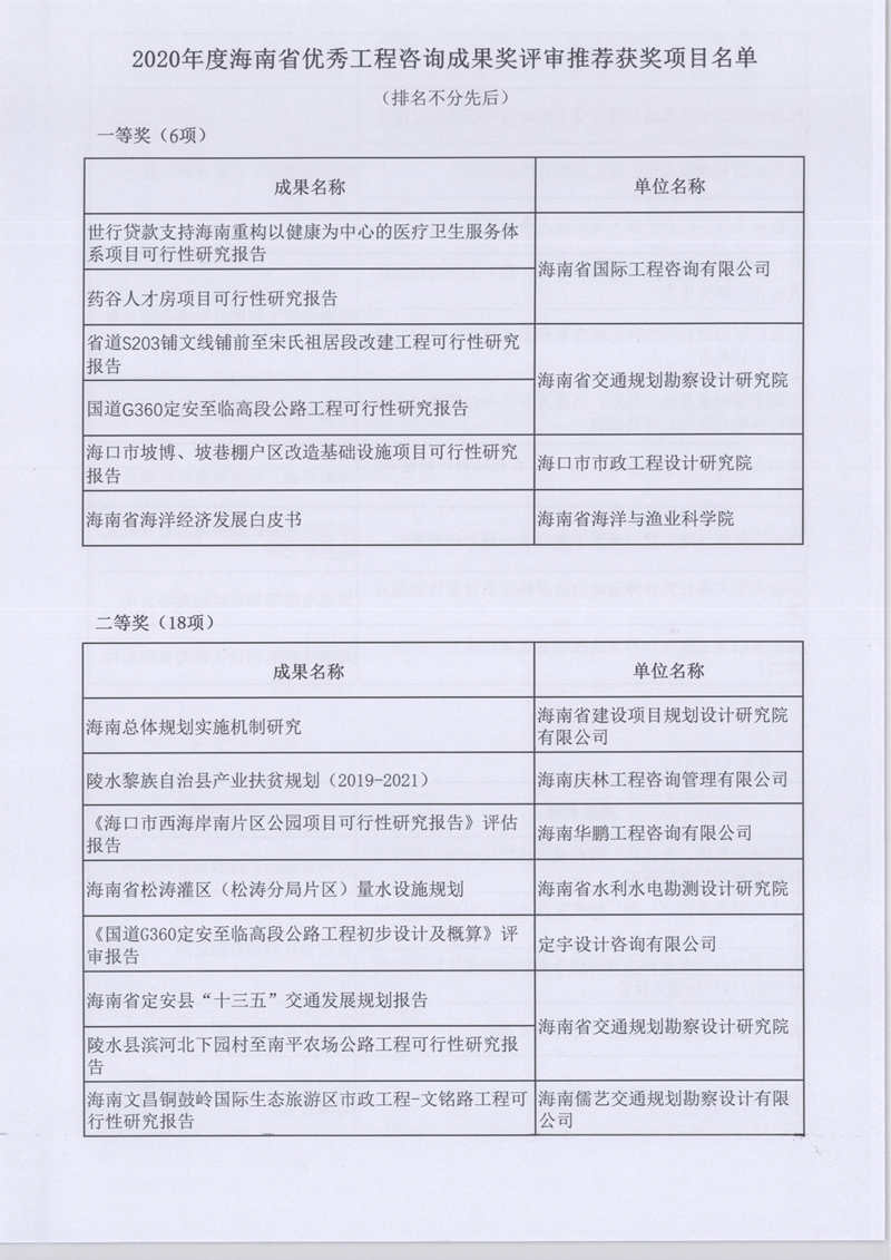 2020年度海南省优秀工程咨询成果奖评审推荐获奖项目名单公示 您所在位置:网站首页 > 详细信息