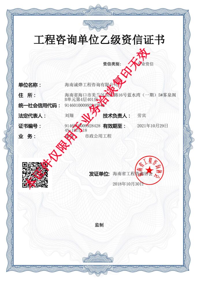 海南诚烨工程咨询有限公司成立于2014年5月21日,注册资金200万元,办公地址为:海南省海口市美兰区白龙南路73号滨河小区白龙大厦A座3F04房,是一家立志专业从事工程咨询的技术知识服务型企业。具有工程咨询乙级资信资质,是海南省工程咨询协会理事单位。公司主要设有总经办、财务部、技术部、办公室,总人数15人,技术人员12人。工程技术人员主要为建筑、公路、市政公用工程、给排水等专业,在工程咨询、造价、项目管理等行业具有深厚的理论知识和多年实际工作经验的专业精英。