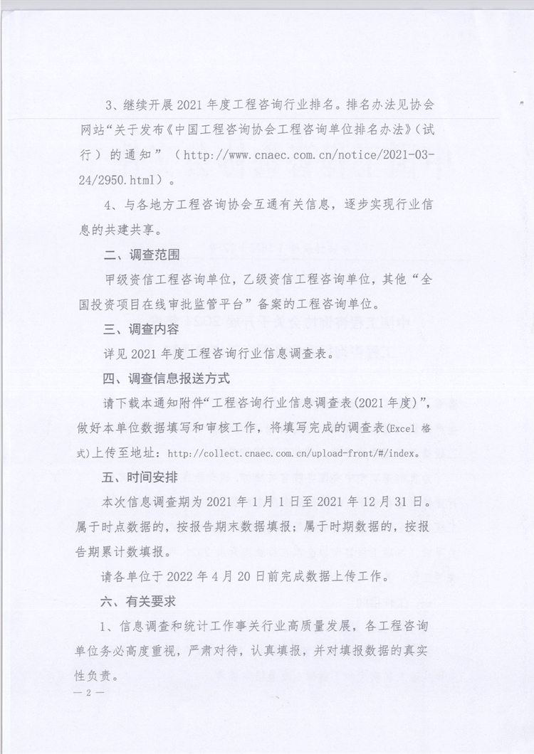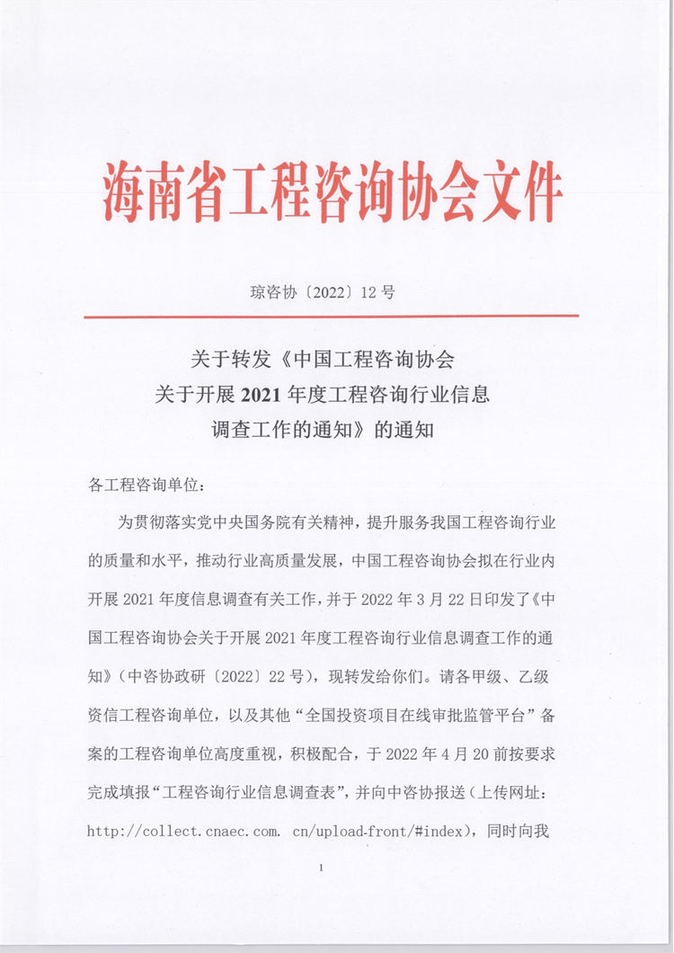 关于转发《中国工程咨询协会关于开展2021年度工程咨询行业信息调查工作的通知》的通知 您所在位置:网站首页 > 详细信息