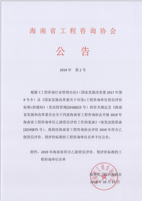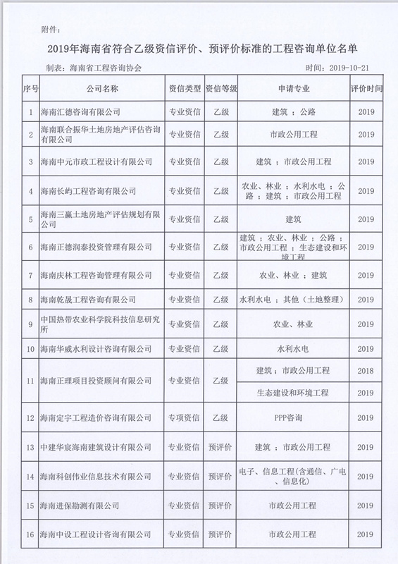 2019年度海南省工程咨询单位资信评价乙级名单 您所在位置:网站首页 > 详细信息