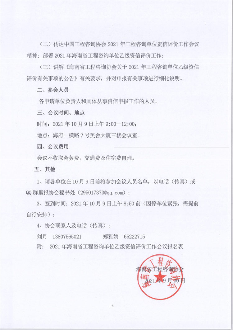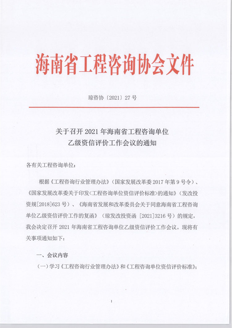 关于召开2021年海南省工程咨询单位乙级资信评价工作会议的通知 您所在位置:网站首页 > 详细信息