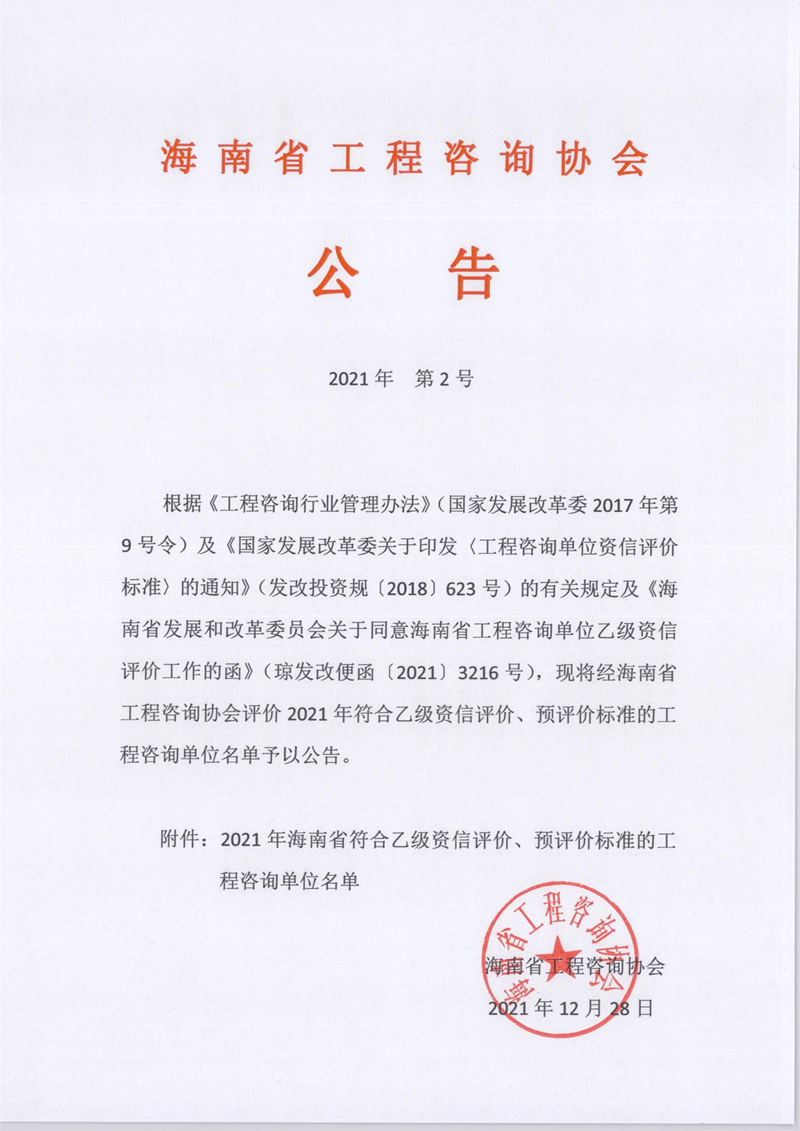 2021年度海南省工程咨询单位资信评价乙级名单 您所在位置:网站首页 > 详细信息