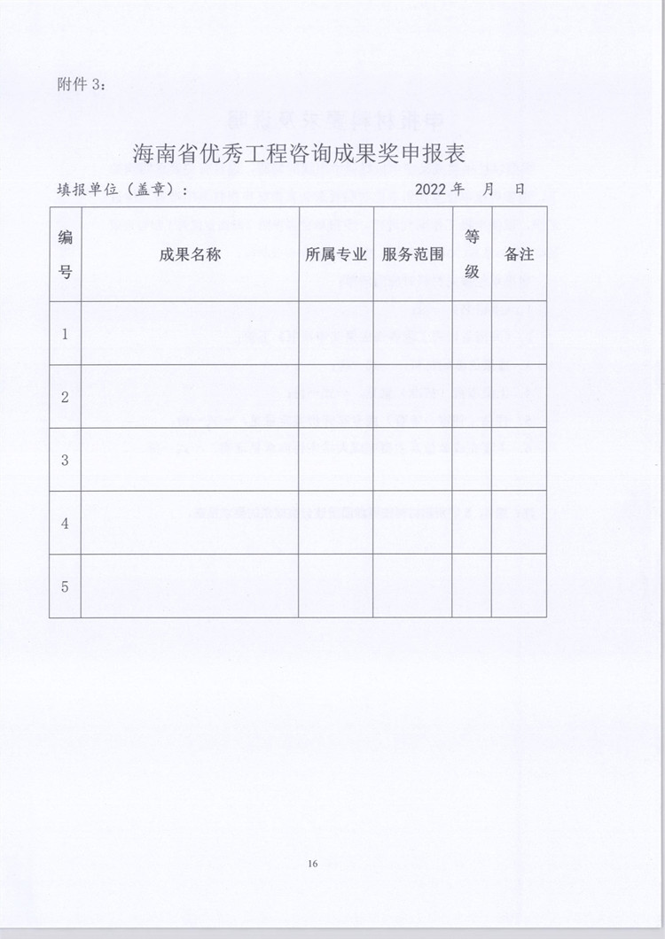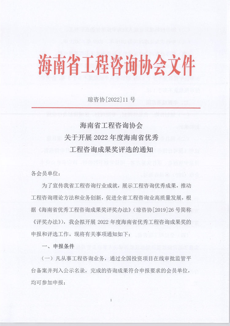 海南省工程咨询协会关于开展2022年度海南省优秀工程咨询成果奖评选的通知 您所在位置:网站首页 > 详细信息