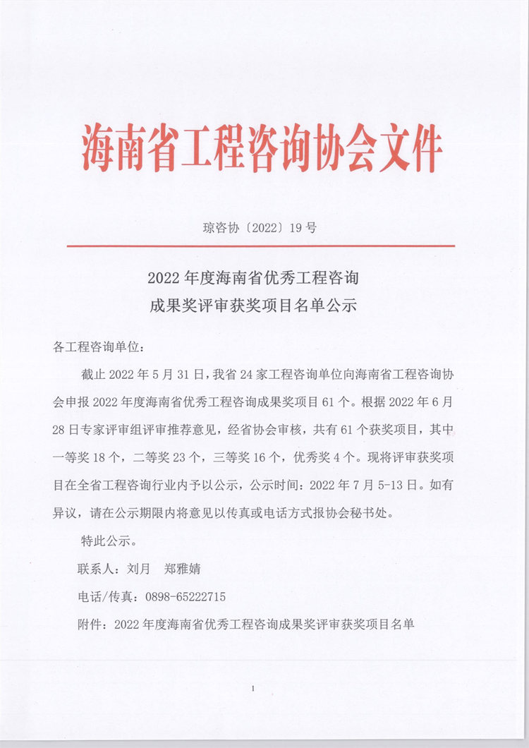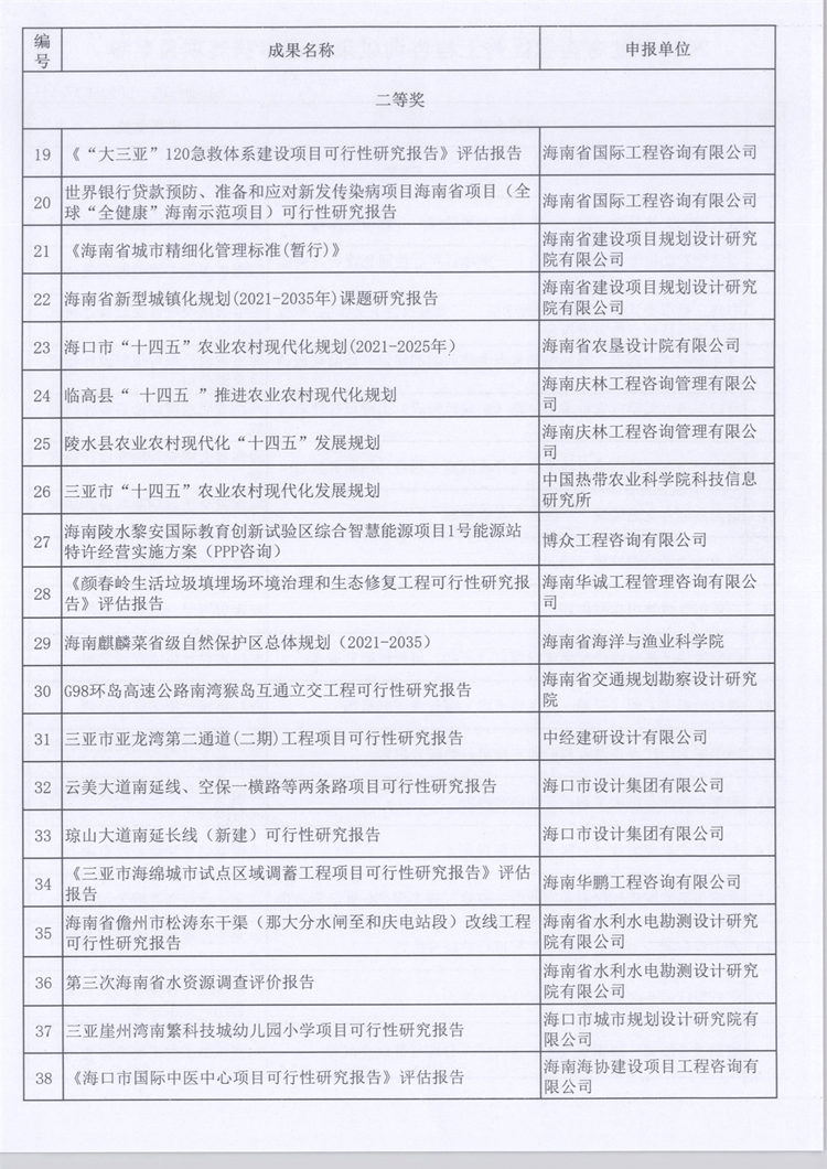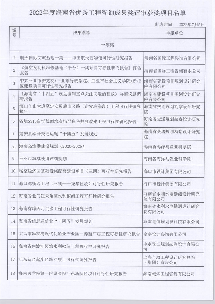 2022年度海南省优秀工程咨询成果奖评审获奖项目名单公示 您所在位置:网站首页 > 详细信息