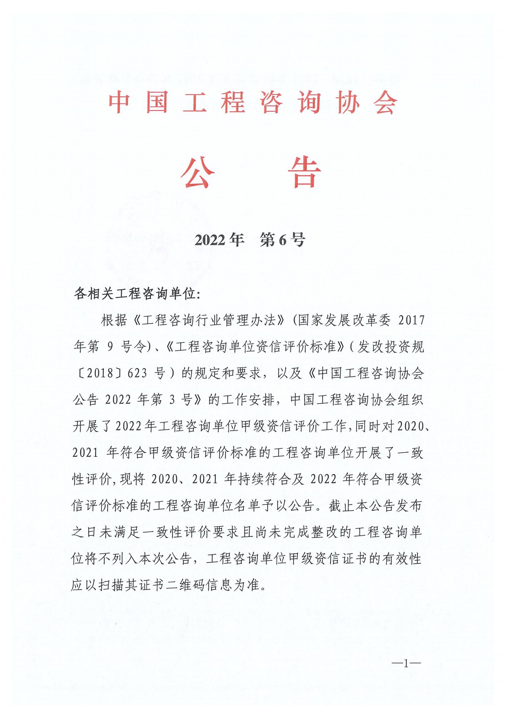 中国工程咨询协会公告2022年第6号 您所在位置:网站首页 > 详细信息