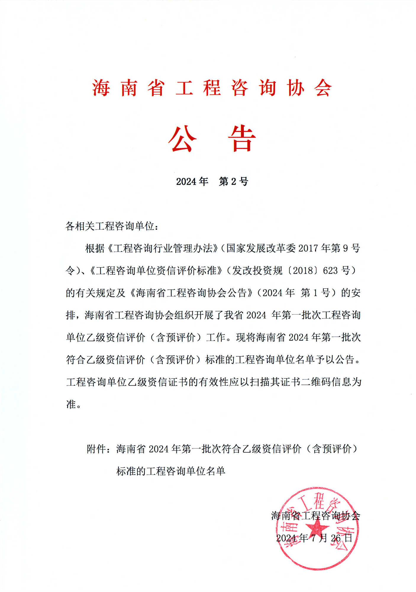 海南省工程咨询协会公告2024年第2号 您所在位置:网站首页 > 详细信息