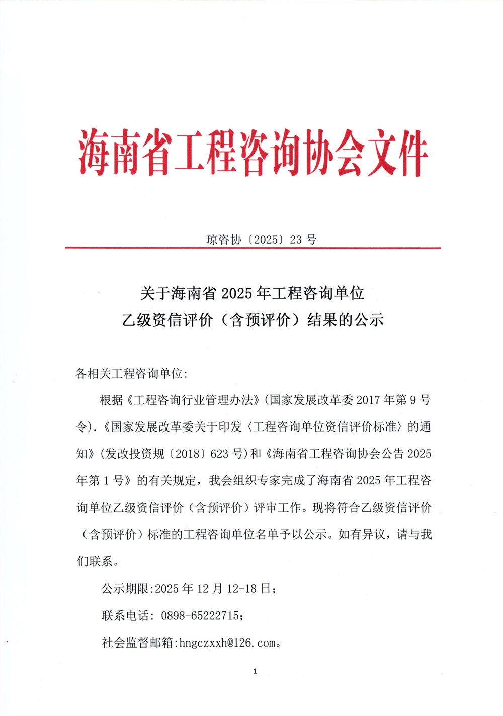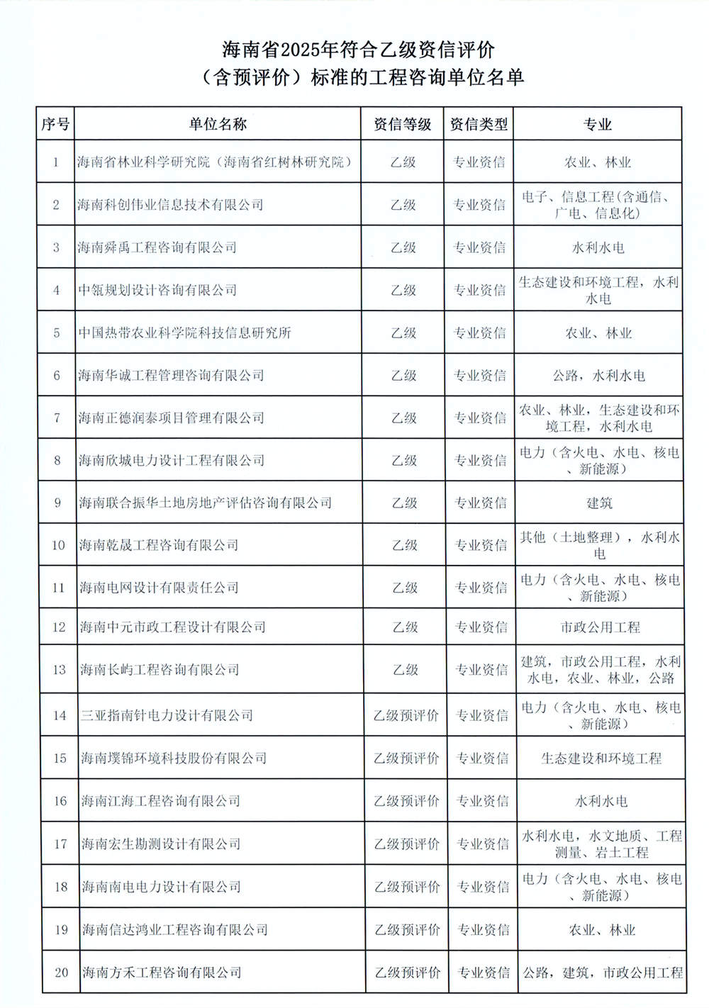 关于海南省2025年工程咨询单位乙级资信评价(含预评价)结果的公示 您所在位置:网站首页 > 详细信息